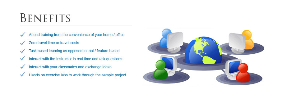 The online courses are taught by a live instructor on a specific day and time. These courses are the same as their classroom counterparts in terms of content and duration. You will receive the link to the Virtual Classroom and course materials 48 hours in advance. On the day of the training you can attend by clicking on the link. Please read the Hardware/Software requirements section for pre-requisites. Enter your registration details and you will be directed to the virtual classroom where a Live Instructor will give you a warm welcome. You can interact with the Instructor and classmates, just as you would in a physical classroom.